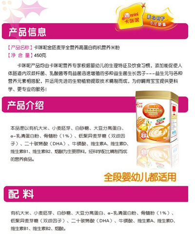 卡咪呢金胚麥芽全營養(yǎng)高蛋白有機(jī)營養(yǎng)米粉