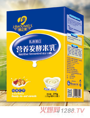 1.酵立美發(fā)酵米乳是以大米、小米等五谷和脫脂乳粉為主要原料,以腸胃道營養(yǎng)益生菌(嗜酸乳桿菌或動物雙歧桿菌)作發(fā)酵劑,經(jīng)烘烤、糊化、酶解、調(diào)配、菌解等工藝,制成口感細(xì)膩,質(zhì)地均勻,有大米或相應(yīng)五谷的焦奶香味,不添加食用色素和防腐劑的發(fā)酵米乳。