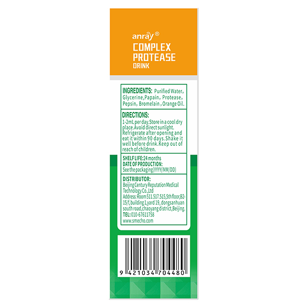 青萌復合蛋白酶飲品,新西蘭原裝進口,主要成分有:水、甘油、木瓜蛋白酶、蛋白酶、胃蛋白酶、菠蘿蛋白酶、甜橙油,每毫升含復合蛋白酶120mg,高含量,高酶活性,促進蛋白質(zhì)消化吸收,提高利用率。液體設計,甜橙口感,食用方便。